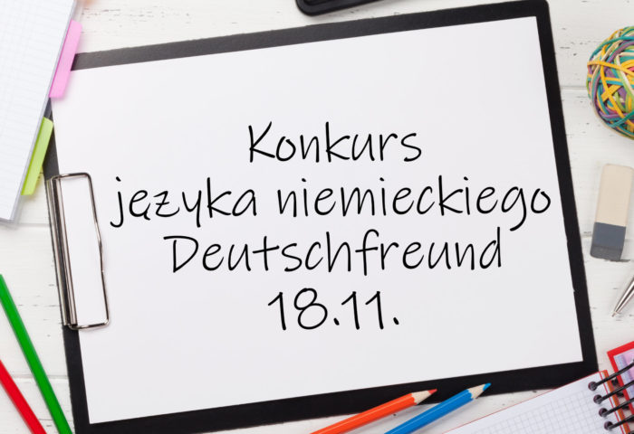 18. listopada odbędzie się konkurs języka niemieckiego DEUTSCHFREUND dla klas 5-8. Zapisy trwają do 16. października u nauczycieli języka niemieckiego. Koszt: 12 PLN