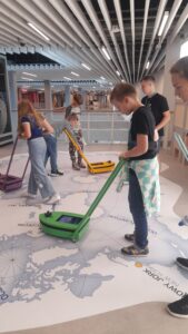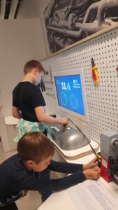 22 września 2023 klasa 5bm wraz z wychowawczynią panią Arletą Sielicką w ramach wyróżnienia zdobytego w konkursie „Morskie doświadczenia” spędziła wspaniały cztery intensywne godziny na zajęciach edukacyjno-interaktywnych w Morskim Centrum Nauki. Uczniowie samodzielnie przeprowadzali doświadczenia z wykorzystaniem samoobsługowych eksponatów i myli się ten, kto sądzi, że były to li jedynie pirackie rozrywki pokroju gry w kości czy przeciągania pod kilem. Zwiedzili przy tym pięć stref tematycznych, zapoznali się z projektowaniem i budowaniem statków, sposobem sterowania ogromnych jednostek oraz właściwościami wody (upewnili się i organoleptycznie potwierdzili, że jest mokra). Wykonywali doświadczenia z prądem elektrycznym, a także zobaczyli morze jako żywioł – połączenie wody, wiatru i lodu. Nauczyli się sposobu okiełznania tego żywiołu i zabezpieczania się przed nim, brali również udział w akcjach ratunkowych. Dowiedzieli się przy okazji o wpływie człowieka na morze i oceany. Na