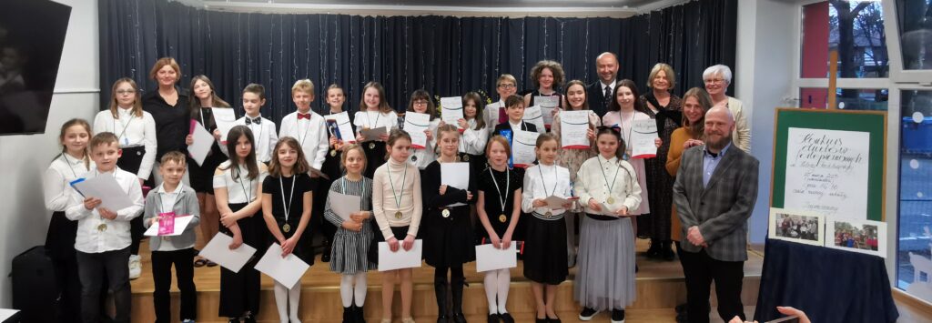 W poniedziałek 20 marca 2023 roku, uczniowie naszej szkoły wzięli udział w konkursie duetów fortepianowych, zorganizowanym po raz pierwszy ku pamięci p. Heleny Pachlowskiej.