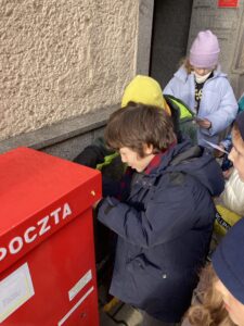 Umięjętności adresowania, wyszukiwania kodu pocztowego, zapisywania form grzecznościowych i określania adresata przećwiczyliśmy w praktyce. I to w najprawdziwszej Poczcie przy ulicy Pocztowej! Najprawdziwszej, gdyż miała w sobie wszystko to, co mieć powinna: niewielką kolejkę, czynne wszystkie okienka i znaczki na list. Klasa 4cm spisała się znakomicie – i znakomicie podpisała swe listy do najbliższych. Już niedługo spodziewajcie się w Szczecinie, Wołczkowie, Chojnice, Krakowie, Warszawie korespondencji od pewnych życzliwych dziesięciolatków:)